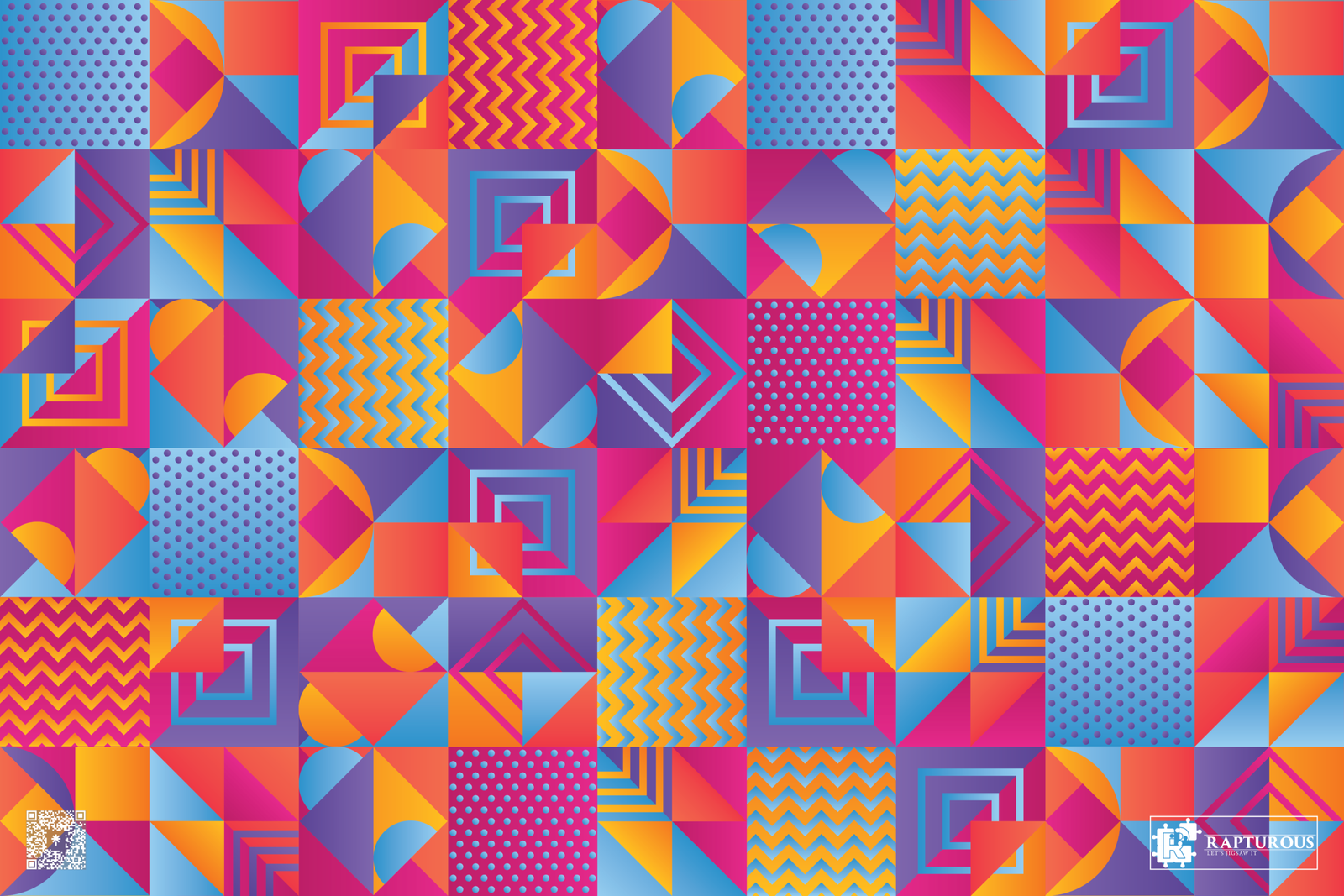 This cryptic puzzle features infused repetitive geometric structures and a blend of vibrant colors designed to challenge and engage. Its intricate design promises moments of confusion followed by bursts of endorphin release as each piece is correctly placed.